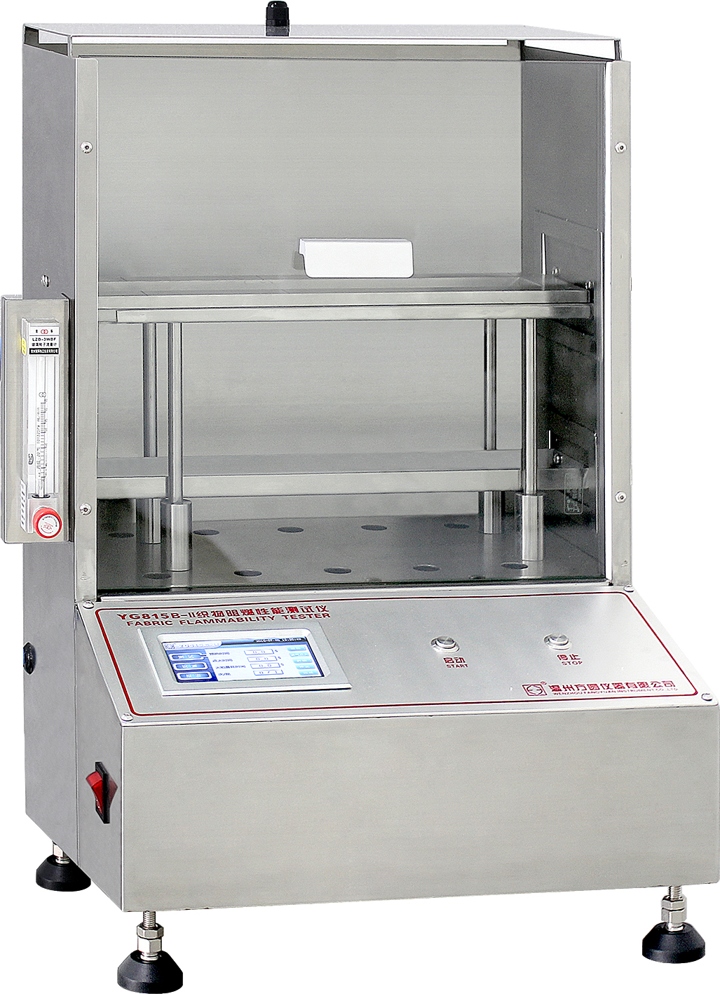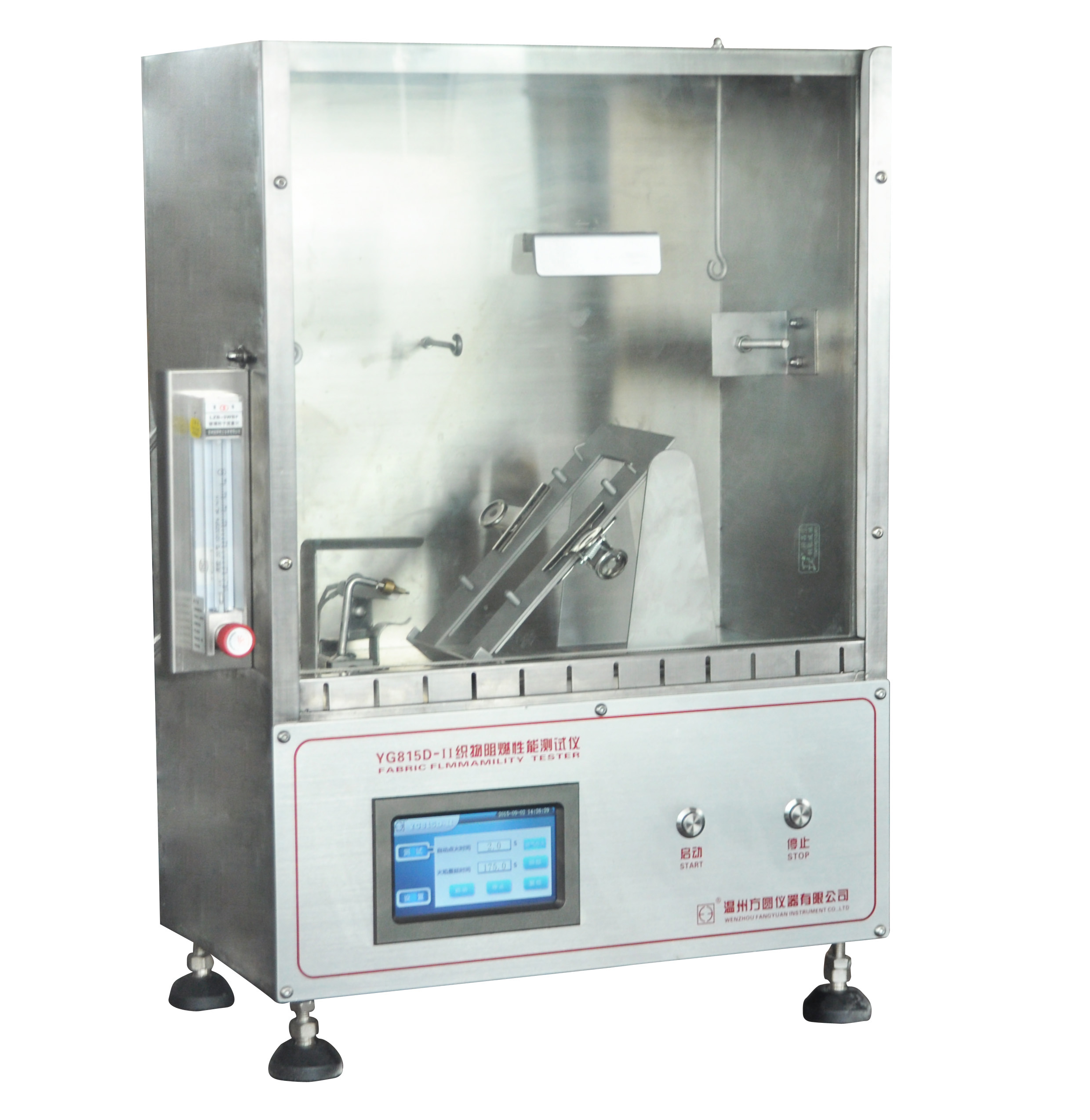130 YG815D-II織物阻燃性能測試儀(小45度法) GB/T14644-2014、ASTM D 1230、16CFR 1610等標(biāo)準(zhǔn)。